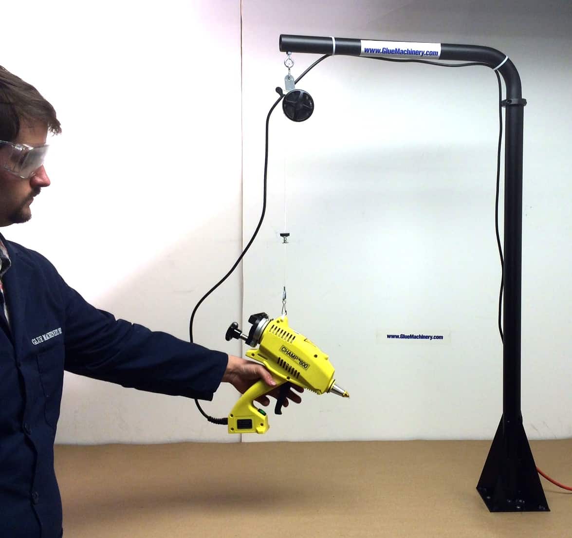 The Champ Gun Ergonomic Suspension System allows reduced strain on operators and minimizes instances of broken applicators due to dropping.
