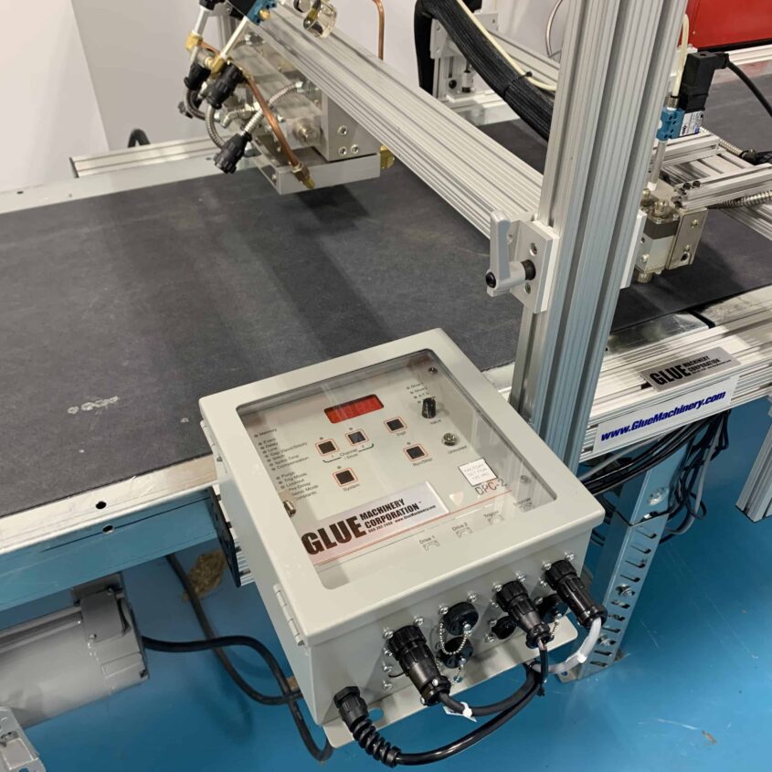 Glue Machinery Corporation builds and sells hot melt and cold glue machinery worldwide. Many of our customers equip their conveyors with our glue machinery to apply adhesive to substrates that pass under our applicators. After the glue application they then assemble parts downstream on or off the conveyor. We have determined that Glue Machinery Corporation should offer a complete package to include gluing system, pattern controls, adhesive and conveyor. The Glue Conveyor Assembly Line is simple to build and operate and is relatively inexpensive when compared to robotics. Customers place parts on the conveyor belt, convey them under the glue nozzles for a perfect glue pattern every time. The Glue Conveyor Assembly Line is offered with both hot melt and cold glue sytems. Hot melt can be extruded, swirled and fiberized. Water based cold glue can be extruded and sprayed.